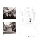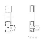 The retreat’s modest exterior belies the spaciousness of the main floor. Masonry and timber are left exposed, while new surfaces receive variations of white. Details are minimized to let wood, brick, steel, and light converse. A remnant of the original masonry fireplace anchors the composition, skirted by a suspended steel stair.