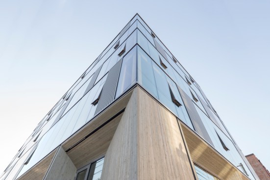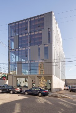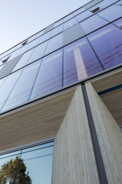 A delicate masterpiece constructed with care; constructed with nostalgia toward bigger and bolder structures. Visually fragile and protected under glass and set upon the world. Framework is a direct adaptation of the historic small plate timber structures that weave through the building fabric of the central Eastside of Portland Oregon. Structurally little different than neighboring 100 year old structures, the elimination of the masonry perimeter walls necessitated a shift in identify. The retail frontage in the concrete base is allowed to take on a more sculptural reading, relating by contrast to the taut glass skin above. Traditional wall and window are able to give way to a simple glass vitrine that allows the warmth of the wood interior to be clearly seen from the street. The central Eastside industrial district is the geographic center of Portland. With its collection of historic warehouse that have been adapted to house industrial creative workspace, the Eastside is the hot bed for Portland’s maker market. The gritty nature of the Eastside remains a major identifying element. Big open framework buildings sit amongst the active rail lines and freight trucks. The building’s base is carved as a mass, rising up to hold the framework display. Wood facets frame the entry and moments and spaces along the public realm. Through the design of the project, an identity transpired. Framework became more than a building name, it captures the method and the logic of how it is built and how it behaves.