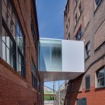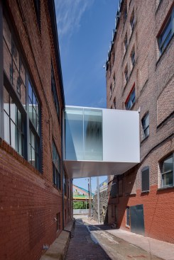 MICA’s consolidation of its graduate programming establishes an anchoring presence in the school’s neighboring Station North Arts & Entertainment District. The graduate facilities now include a former millwork building that sits adjacent and below the school’s recently renovated Graduate Student Center. A new pedestrian bridge, envisioned as a glass box pinned between the two historic manufacturing buildings, allows students to cross over and connect to new classrooms, offices, and studios and creates an integrated and dynamic central hub for the Graduate programs.