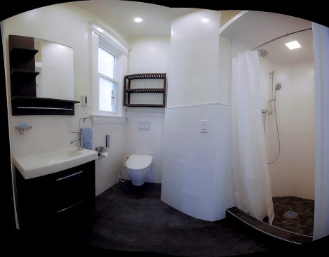 Existing condition: condominium with one full bathroom and separate WC room Client request: convert and rebuild create 2 separate full bathrooms, one including both, a separate tub and shower. everybody said it cannot be done. Challenges: very limited given existing space and code requirements compliance. additional challenge large shower minimum 37" x 37"+ Solution: careful anthropometry & design study, scale & 3D model for verification, careful selection and choice of fixtures, positioning and layout -wall hung toilets -large but slim design corner sink -large corner medicine/mirror cabinet -soaker tub 48" long x 32" wide & 18" deep End product: two relatively spacious independent full bathrooms each with wall hung toilets, 37"+ individual showers and one bathroom with an additional soaker tub 18 inch deep.