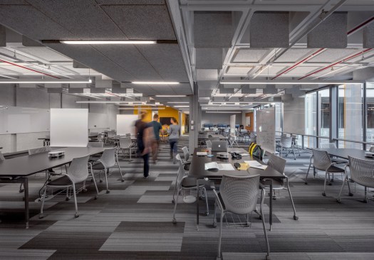 The space doubles the tutoring center capacity, and is designed for resilience with reconfigurable furnishing and whiteboard systems along with adjustable overhead power supply via chord reels allowing for flexibility of layout and group size. The space was conceived to function as an active participant of the learning environment.