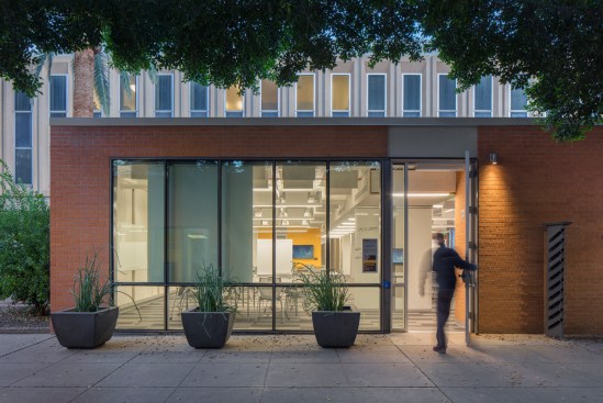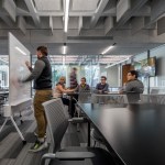 In collaboration with ASU’s management group and campus architects, and a steering committee of stakeholders, the team established a need for transparency in the design, respect for the current structure, and usability of writable surfaces. The resulting efforts led to a facade design that increased visibility of the tutoring program and respected the existing structure without sacrificing the need for writable space and comfort by implementing a series of sliding white board panels integrated into a custom glazing system that was shaded from the eastern sun with vertical fins.