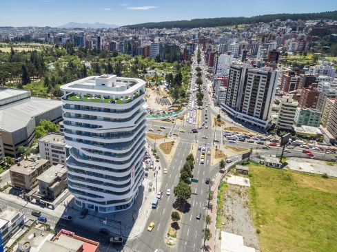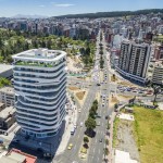 Located in the Ecuadorian capital of Quito, the ‘GAIA building’ has been constructed as a new landmark for the city. Comprised of a total of 15,000 sqm of mixed-use space and topped with a large roof garden, this constructed green space is visually connected with the distant Andes mountains. Altogether, the fifteen story tower merges commercial opportunities on the ground floor, offices on the next four levels and residential units on rest.
