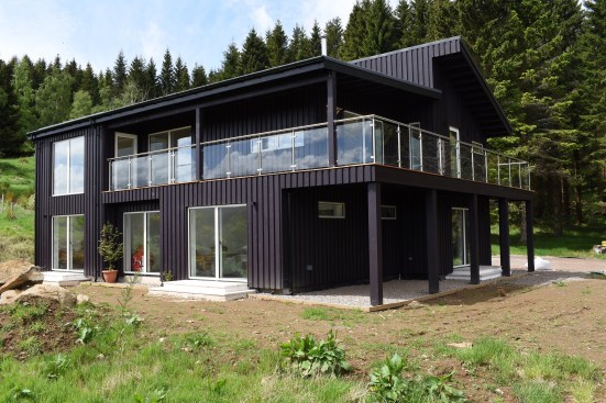 Garth Wood House has been constructed with a mixture of larch, hazel screens and wood mizered from the client’s own forest.