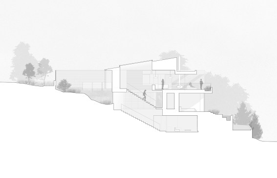 The G’Day House is a commission for an Australian ex-patriate family, who requested a home that would support a relaxed attitude toward daily life and would help them re-connect with a warm-weather lifestyle. Column-free sliding doors at the Southeast corner of the house effectively double the size of the living area when open; indoor and outdoor spaces hold equal priority. Materials, form, and spatial relationships are intended to evoke the feel of a beach house: simple, casual and flexible. The dining table and wood-burning fireplace can both be rotated to support a variety of arrangements depending on weather and number of guests. As avid hosts, the clients felt that the kitchen should anchor the primary living spaces at the upper floor. Combining the dining room and kitchen into a single long space allowed for a narrow floor-plate and resulted in a generous side-yard area, used for outdoor cooking. A reflecting pond and fence at the scale of house connect this space with an open terrace to the South and an enclosed garden to the North while creating privacy to the street. This sequence of outdoor spaces from front yard to terrace encourages the direct exterior arrival of guests to the kitchen.