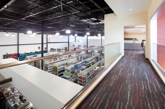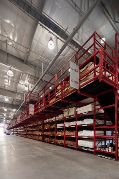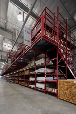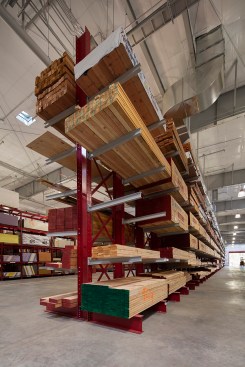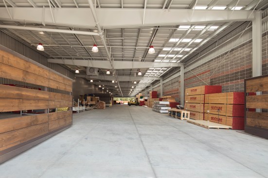 Golden State Lumber has been providing lumber and building products to builders and buyers across Northern California since 1954, and in early 2018, the company’s service was elevated with the addition of a new showroom, retail space, and areas for employees to work and engage in conversation with one another. When Seth Nobmann, third generation owner of the company, wanted to create this new showroom and retail space fitting for DIYers and professionals alike, he turned to award-winning, Alameda, California-based architecture firm MBH Architects and tasked the team with the ground-up construction of a new home in Concord, California. The 75,500-square-foot space houses a retail area, showroom, offices, and an indoor lumberyard displaying all products available to customers. The opening marked the first indoor drive-through lumberyard located on the West Coast. The basis of MBH Architects’ concept was to take this industrial building and turn it into a well-suited space made to fulfill the needs of local consumers and Golden State Lumber staffers. To do this, MBH implemented simple materials with different colors and patterns in varying scales to express and encourage movement throughout the various spaces. Each room conveys a different feeling and experience as the color schemes shift as customers and employees move about. Colors paying homage to the Golden State Lumber logo, a subtle red, are also found throughout the the many areas, including in details like the steel shelving in the indoor lumberyard. Designed to suit the needs of the community, the drive-through indoor lumberyard was developed with a full retail center and showroom in addition to open sales areas and administration offices. The lumber storage and delivery area, which due to heat and dust are enclosed in a prefabricated drive through shed, allow customers the ability to drive a car or truck directly into the space for easy access. Inside, custom racking systems were built and Big Ass Fans were installed to promote natural cooling. To round out the space, skylights by Velux were installed to provide patterned natural light. Attached to the shed is a fully covered delivery pick up and drop off section for larger trucks. This area features a metal roof, skylights for natural light, and tunnel fans used to keep air moving along the long length of the delivery zone. The shed and delivery zones were carefully designed to acoustically protect neighbors from noise and dust. Additional highlights include 10 innovative, industrial forklifts powered by solar panels and an exterior lined with a combination of Centria & MBCI metal panels. Each design element selected was made with the intent to create a space that could continuously evolve to serve the ever-changing needs of the Golden State Lumber’s staff and clientele. Although traditional lumberyards are meant to serve a single function, wood storage, Golden State Lumber was strategically designed to do much more than that— it is a space that is meant for showcasing product, educating consumers, and supporting staff. Serving everyone from homeowners to professional builders, the retail and showroom space provides design assistance to clients and carries an impressive variety of products, including lumber, hardware, trimming, doors, windows, and various specialty-building goods. In order to provide exceptional service to customers, the heart of the building features office space that allows the Golden State Lumber team to sit down and meet with homeowners and potential clients to discuss their design needs. On the second floor, operational office space, suitable for 40 employees, features open workstations, a conference room, and a lounge. Outside, the parking lot is separated from the main yard by a custom, laser-cut fence that was implemented to enhance security. The laser-cut oxidizing steel was inspired by the end of an old tree, serving both as an aesthetic and safety function. Security can view the drive-through lumberyard through the trees’ annual rings, allowing visitors to feel at ease that their property will guarded while they shop. Describe the project goals and how metal was used to achieve these goals: MBH Architects wanted wanted to update the typical lumberyard and turn it into a modern destination that spoke to honesty, longevity, and quality. Additionally, the team worked with the goal to design a space that that would continuously serve the community and would last for generations to come. The initial design concept included both an indoor and outdoor lumberyard. However, the team faced objections from the public during the planning review phase, with concerns such as the amount of dust and noise that could generate from typical outdoor lumberyard operations. Additionally, there were hesitations that a lumberyard would not fit in aesthetically with the surrounding community, which consisted mostly of office buildings. To address these concerns, the design team opted to create an elevated indoor lumberyard experience that caters to a variety of clientele while settling any uneasiness from the public. As the lumberyard was being built, the project team’s first thought was to implement wood throughout. As they further developed the design concept, MBH Architects opted to use a steel construction complemented by a metal exterior. Steel and metal siding offered the modernized look that the project team wanted while providing the building with a sense of durability and permanency. A metal-insulated aluminum panel system along with corrugated siding lend an industrial feel to the project while still allowing the building to be broken down into smaller segments. The project team attempted to divide the building to appropriate scale and variation for the neighborhood. In doing so, the team paid attention to exterior materials to express the function of the interiors. For example, clients can easily discern where retail sales contrast with lumber storage. S