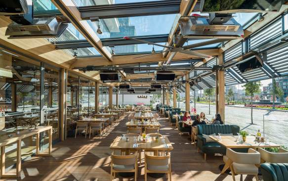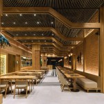 Polonez is known as a famous meat and delicatessen brand in Turkey. The brand entered butcher, delicatessen and steakhouse service with Grill Polonez Restaurants. The first branch in Atasehir, İstanbul which was also designed by GVDS entered service in 2015. The second branch of Grill Polonez Restaurant entered service in Vadi Istanbul Shopping Mall in February 2018 with the signature of GVDS Architecture. The restaurant is located in relation with the outdoor; it is shaped by an atmosphere that creates familiar and intimate feelings for the user. Grill Polonez Restaurant with 850 square meters area accommodates open and semi open terraces. The seating areas was organized according to different age groups’s requirements with the same design but different units. Thanks to this space, the restaurants can easily accommodate crowded groups. In this way, the spacious place is dissociated into smaller pieces and identities for the person or group of people can embrace the place. The design and layout of the tables and seating groups were carefully chosen to suit every requirement. The kitchen is designed to be semi-open so that customers can follow the cooking process and feel safe about hygiene. Grill Polonez Restaurant is designed with a large meat section where customers can shop for butcher and deli. The use of raw materials such as wood, stone, brick and rope at whole place provides to meet guests with a warm welcome. A semi-open sheer ,which is about 2,4 km long ropes, was applied on de beams that inspired by the ship’s backbone. This light ceiling cover has solved for both possible acoustic problems and the ceiling has been lowered to match the human scale. These ropes are softening the atmosphere in the room and converting the emerging technical problems to advantage. The canopy roof with wooden beam design was inspired by the plane wing section . Thus, terraces associated with the main building, are spreading outwards that makes brightness the terrace area. This roof shape puts Grill Polonez Restaurant in a different position among others. Grill Polonez Restaurant and GVDS Architecture collaboration will continues with new branches in several places later on.