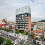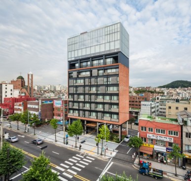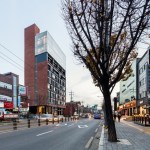 Red brick, a common material for multi-family housing buildings in Sangdo-dong, is used to emphasize the tactile language of the building so that the building can look more familiar. Exposed concrete surfaces made by construction works are preserved as they are so that the roughness of a raw material and sharply edged metal details can make a contrast.