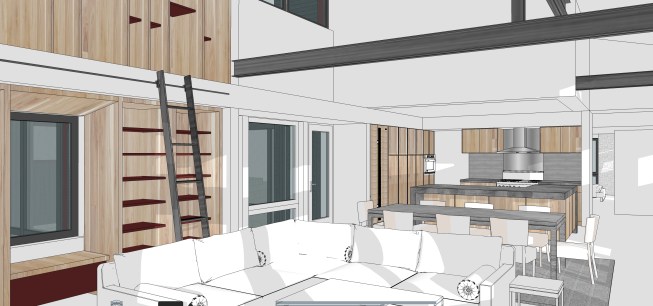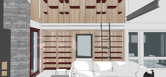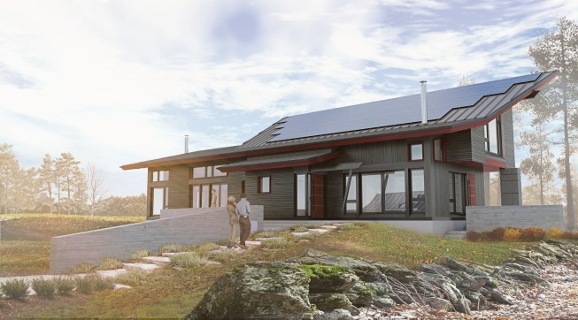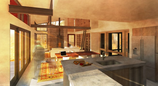 The Site: This modest 2,000 SF house is located on a 2.5-acre site in Harvard, Massachusetts. The town, some 30 miles northwest of Boston, is well known for its lovely farmsteads, rolling hills, stone walls and horse farms. This rugged site has dramatic rock outcroppings and picturesque topography. A U-shaped stone wall defines the front of the lot and creates a kind-of-threshold to the back of the site, which is quite private. A careful reading of the acreage, accomplished through many visits, sketching and consultations with consultants (geotech engineers) provided our team with a clearer understanding of the site’s unique underlying geology and topography, as well as its scenic qualities. The Client: Having both recently retired from a well-known local university, where one was a professor and the other a provost, the clients sought to build a new home that would accommodate their changing needs and interests. Having lived in a larger home while raising their family, they now wanted a more compact house that was still spacious and uplifting. In addition, the clients have a passionate interest in creating a house that was as much “off-the-grid” as possible. The professor in particular was enthralled with the new technologies available to achieve this goal. The Program: The resulting program was for a 2,000 SF house with two bedrooms and a screened-in porch. The public spaces were to be connected, yet spatially distinctive. Light was a premium, as was the need to make the house as energy-efficient as possible. Achieving zero-energy was a goal, but more important was the clients’ need to address energy intermittency. Strategies for overcoming this challenge were key. The Team: To meet the client’s goals, we assembled a capable team of “green” mechanical, electrical and plumbing engineers, a solar design company (design and installation), structural and geotechnical engineers, and a landscape architect. Working closely with the team throughout the design process, we developed a wide range of design solutions to meet the programmatic and performance standards set forth. The Design Strategy: Given the relatively tight budget, we decided to develop a simple plan for the house. The rectangular plan has only one aberration in its otherwise rectangular layout, where the living room wall flairs out to work with the site lines. Likewise, the roof profile was conceived in a simple “shed” form. Its height and pitch are adjusted to accommodate the optimal size of the rooms below it, as well as the ideal solar panel orientation. The roof is clad in metal, much like local barns. Its ends flare out to match the geometry of the stone wall, picking up some of the rugged site’s bucolic rusticity. Thus the subtle difference between the roof’s geometry and the volumes of space below it highlight the contrast between the building’s response to the sun and the client’s programmed spaces. The house’s entrance is marked by a steel beam that extends beyond the eave, forming a gateway of sorts. Entering this intimate vestibule, one is offered a view of the full extent of the building’s southern façade, as well as the rocky outcroppings to the west. A stair with canted walls greets visitors. Early morning and late afternoon light bounces off the north façade as a vertical blade and is reflected down the stairway. The common areas comprise a kitchen, a dining room and a living room. Each offers unique views of the landscape as well as dynamic views of other interior spaces. The stove anchors the west façade, providing extra warmth on very cold winter days. A blank-like deck protrudes over rock formations, offering dramatic vistas of the surrounding landscape. The southern façade tries to balance the need for 12-inch insulated walls with as much window space as possible. A small screened-in porch, two feet below the main level, offers an entirely different visual experience of the site. The bedrooms are stacked on the east side of the house. The master bedroom has prominent views of the stone wall and overlooks the entry driveway. Its master bath also serves as a guest bath without compromising privacy. Another bedroom directly above the master bedroom can double as a recreation room, study, or all-around retreat. The mechanical room houses the solar-panel invertors and (2)16kWh batteries that store additional energy produced by the 56 solar-panel array… Models generated by the engineers and consultants indicate that the house will produce 110-120% of its energy needs. The battery systems will allow for up to three to five days of intermittency, depending on actual usage levels. The two wood stoves in the living room and master bedroom provide additional heat at no extra cost. The exterior is clad in black-stained cedar siding with a terra cotta-colored trim package. The front door and all of the cabinetry are made of natural wood. At night, the warmth of the wood-colored interiors will read dramatically in contrast to the black exterior, especially on snowy winter days. Summary: This house attempts to create a form of shelter that is deeply connected to the landscape while serving its clients efficiently and poetically, in as energy-conscious a way as possible.