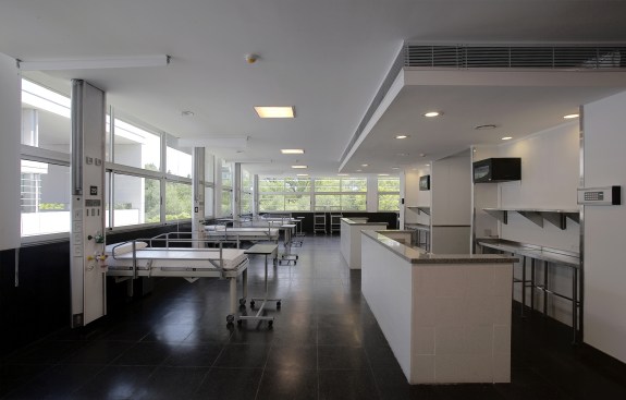 Intensive investigation into the advantages of horizontal modular systems has resulted in a number of award-winning competitions for high complexity hospitals and this approach defined the two basic considerations that drove the design for Rosario’s new emergency hospital: flexibility in terms of its capacity to adapt to new medical technologies and the provision of efficient and comfortable spaces for the patients, staff and families in a situation that is, by definition, highly stressful. Organized into a series of two-story bar-shaped volumes that define zones of usage and their hierarchies, the public areas are located in the bar that runs along the street and the staff offices and services area are located in the bar at the back. In between, three perpendicular bars, separated by two internal patios, which provide natural light and ventilation, contain the treatment areas, differentiated in plan and section on the two floors according to their function and the level of patient treatment.