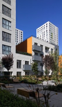 The site is in the middle of a very dense traffic hub, on a low altitude, without any vista. This lead to setup a inverted social life, open spaces optimizing neighborhood relations.
