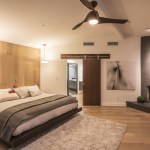The second story features two bedrooms with a private bathroom each. Bedrooms have an entire wall of glass that extends rooms towardsthe outdoors. French oak hardwood floors contrast with the dark walnut wood of the doors and furniture. The bedroom’s hallway is open to the great room, and accommodates a frameless glass railing, giving a feel of spaciousness and lightness.