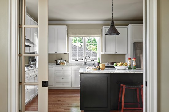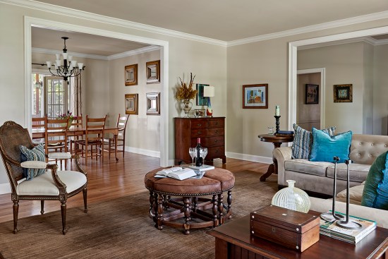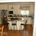 This 1950s single family brick ranch was ready for an extensive update inside and out. The homeowners felt that they were living with an inefficient layout and wanted to revive their space. To do this we began by expanding their kitchen and living areas to better suit their lifestyle. We were able to completely rework the front elevation of this home, adding 172 square feet to the kitchen, 145 square feet to the main living area, and 63 square feet to the front foyer area. We raised the roof on the entire main structure, adding 12" of height in the dining room and 24" of height in the living room areas. We installed a new radius brick walk and porch leaving one to assume this house was built exactly this way…years ago. Within the footprint of the home, the larger kitchen island and more open layout has provided the homeowners with more storage, ease of food prep and entertaining, with a comfortable area for casual dining. New windows were also added to the kitchen brining in more natural light, setting the stage for the dark base of the island to be the perfect contrast to the new white cabinets and countertops. The living room was expanded into the existing front porch and walk changing the elevations of the home maximizing curb appeal. This expansion allowed for a complete facelift of the fireplace, with flanking built-ins on each side with new pocket doors beyond. The pocket doors allowed for a women's group to be held in the living room while the guys watched football in the den sporting its new cathedral ceilings complete with stained trusses, adding warmth to the already welcoming space. This renovation demonstrates how a comprehensive approach can lead to a seamless total makeover. The homeowners could not be happier with the outcome and now enjoy having a home with an updated yet classic look and feel which will not go out of style.
