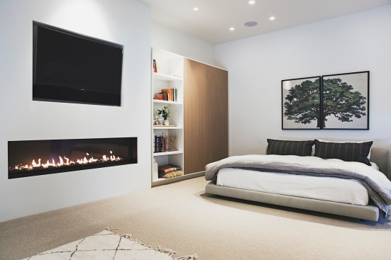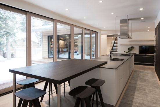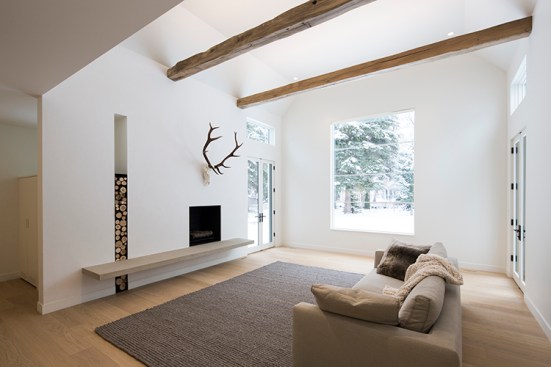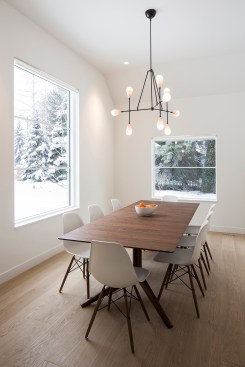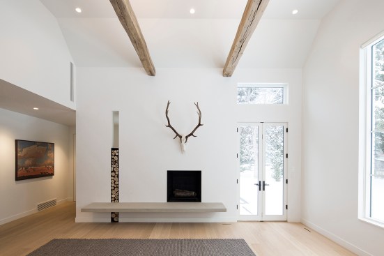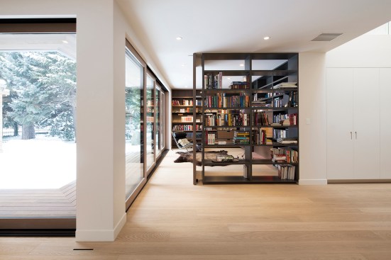 In a historic farm and pasture community southeast of Salt Lake City, Lloyd Architects conceptualized the design for the Hillsden Residence as three simple gables reminiscent of the wooded site’s former 1940s farmhouse-style structure. Its cedar-clad roof, clipped eaves, linear brick, and sustainable rainscreen siding combine to reflect the aesthetic of agrarian structures still standing in the area. Framed by an open courtyard lined with oversized, transparent sliding doors that pull the outdoor landscape in, the home’s cool-toned living spaces open to a trellised southeast-facing patio and private side yard that overlook Mount Olympus and beyond. An operable skylight at the center of the house provides direct sunlight, creating a bright, quiet retreat for the young family that lives there.