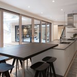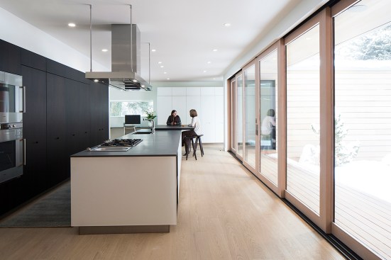 Exploring design ideas with the clients, the design team proposed three simple gables that recall the farmhouse forms of the original house but in an abstracted simple expression. Cedar clad roof, clipped eaves, linear brick, and sustainable cedar rain-screen siding combine to reflect a collective tradition of agrarian structures still standing in the area. The courtyard, which recalls Japanese gardens, allows daylight, breezes, and activity to flow seamlessly from inside to outside.