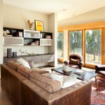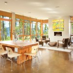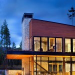 Conceptually, the wood and stone exterior forms respond materially to the forested, mountainous region, but not in a traditionally rustic fashion; instead, the simple, singular pitch is a subtle architectural tip-of-the-hat to the rugged regional mountainscape that surrounds the home.