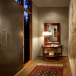 A narrow, nearly 22 foot-wide rectangle organized roughly along the east-west axis, the plan is oriented to take full advantage of views up and down the slope upon which the building rests. This curiously narrow arrangement is generously adorned with glazing in appropriate locations to allow natural light to fill the spaces within, to the point where no artificial lighting is needed throughout daylight hours. The main (public) entry is located in an inconspicuous and non-conventional location, far from the heart of the home. This was an intentional move, channeling guests down the long, clerestoried art gallery hall before being welcomed into the living area. Access to the upper floor (the most private area) exists at the westernmost terminus of this hallway, thereby condensing all circulation in the home to the northernmost 4 feet, adding to the overall efficiency of space use.