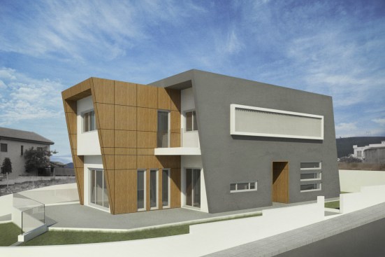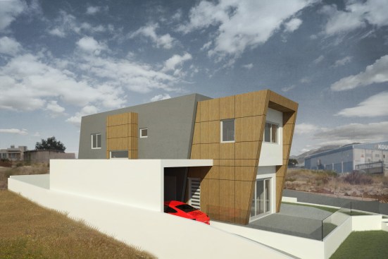 The design of this bioclimatic house in Limassol, is based on the combination of two main volumes, which are translated into the final composition. They are enclosed in two frames that characterize morphologically the synthesis, while function as passive shading canopies. Generally, the design is driven by simple geometries reaching the contemporary minimalistic trends, which led to the use of cold colors, large wooden surfaces and the use of the neutral white color. The spaces are separated functionally into public and private and placed in different levels, ground and first floor, achieving a functional layout with a full exploitation of the environmental conditions for the achievement of energy savings and thermal comfort for the users. The layout of the spaces was designed in such a way in order to achieve the required functional connections between the internal spaces, and at the same time the building “opens” to the south taking advantage of natural light and solar energy.