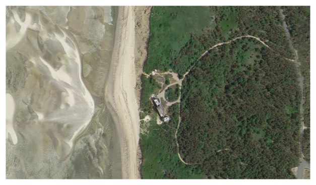 Adding to the house’s “camp” persona are hidden structures sprinkled throughout the site, including a deck with an integral hot tub, outdoor showers both near the beach path and also near the parents’ bedroom and hot tub, a remote deck set up for tents, a small hill-top shed with running water and an espresso machine for uninterrupted working, a half basketball court dug into the hill, hiking trails, hammocks in a gnarled oak grove, two separate fire pits set in sandy sitting areas, and a shady dining area for large gatherings below the raised main deck.