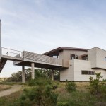 Sited gently on the lower slope of a dramatic sixty foot high coastal bank and surrounded by miles of undeveloped Cape Cod National Seashore beaches and scrub pines is a warm, modern beach house that is more than just a place to enjoy uninterrupted ocean views and sea breezes. Our clients dreamed of a house that would work equally well as both a year-round family “camp” and also as a “thinking retreat” for collaborating with their colleagues.