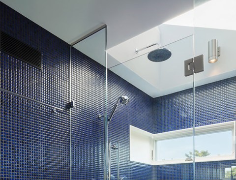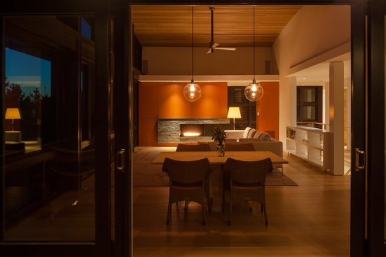 The house is designed to achieve net zero status on an annualized basis with a 10 kW grid-tied rooftop solar photovoltaic array on both the main house and the studio, along with super high efficiency air to air heat exchangers and energy recovery ventilators. Our clients did not pursue LEED certification but the house was designed with LEED certification in mind.