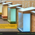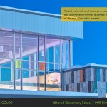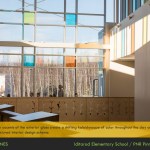 • The vibrant colors and transparency of the school’s wedged-shaped clerestory is a warm and welcoming beacon to the community when used during dark winter evenings. Active and engaging interior functions are readily visible from the street. Color-shifting lighting provides a varied and programmable `light show’ in the high bay windows.