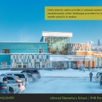 • Iditarod is one of a few schools in the Mat-Su School District that is located in an urban area and is surrounded by mature birch forests. The school is configured to be an active community center with gathering spaces, classrooms, and athletic facilities readily accessible while emphasizing views, materials, and textures that respond to the natural surroundings.