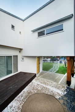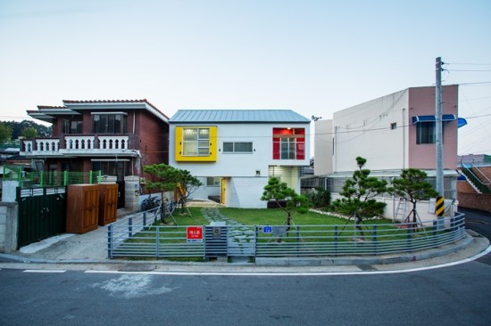 This house placed in Gyo-dong, Gong-ju, Chung-nam with alley. And other building near by this house. The site shape is longer north to south. So, clients were likely to exposure by the outside people eye.