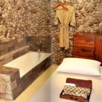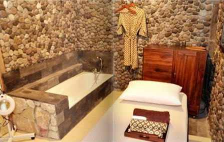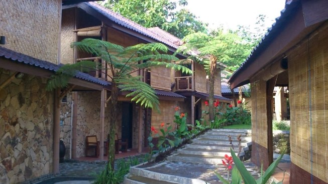 Innovation and adaptation to local values The use of bamboo materials and scrap wood as the main structure of the building buttresses on each unit. besides the bamboo material is also used as wall and ceiling, because this material is a material that is practical, economical and artistic. the process of making patterned woven bamboo and bamboo planks in this project by involving elements of the local craftsmen, the course will provide a positive and significant impact on the local bamboo craftsmen. woven motifs on the walls and ceiling along with bamboo planks on the wall function arranged with regular composition to remain functional flow air circulation, so that the cross-ventilation system to function optimally. the use of bamboo and bamboo planks as the building shell can also add aesthetic value to the building facade. the use of natural stone and stone processing as the basic elements forming the natural character on the exterior and interior. preparation of sandstone pattern on the facade adoption of clothing batik motive as adaptation of local values, in order to provide a unique identity on the facade of this building.