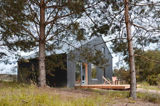 Kashubia is an unusually picturesque region in the north of Poland, rich in pine forests, meadows full of flowers, and crystal-clear lakes. Near one such lake – Lake Gowidliński –lies this place of repose and close contact with nature. The idea behind this project was to create a simple, functional and economic building which can be used all year round.