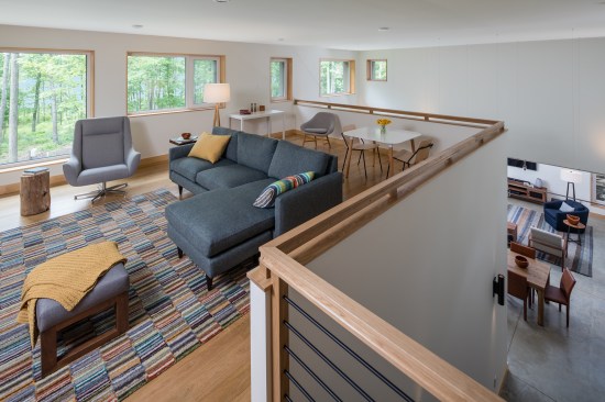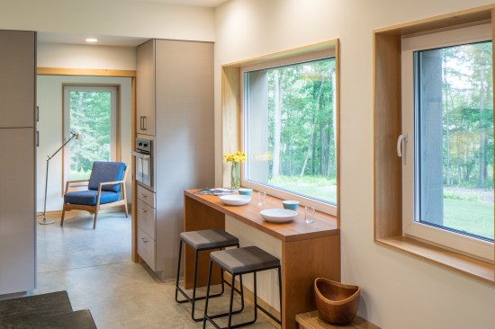 The Keffer Residence is Pike County, Pennsylvania’s first home designed to meet the Passive House standard. The house is a weekend family retreat for a retired couple from the New York metropolitan area. Located in a historic private forest preserve, the design had to respect the off site views from the road and lake. The site is densely wooded with excellent solar access to free energy and views of a pristine mountain lake.