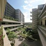 Khoo Teck Puat Hospital is a 550-bed replacement hospital on a 3.5-hectare urban site in northern Singapore. The design recreates the charm and naturalistic ambiance of the pre-war hospital while enhancing staff efficiency in a patient-centered care environment. The energy-efficient design reduces energy costs by 50% and provides 40% of the floor area with the potential for natural ventilation.