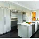 and backsplashes highlight framed white cabinetry, which, combined with