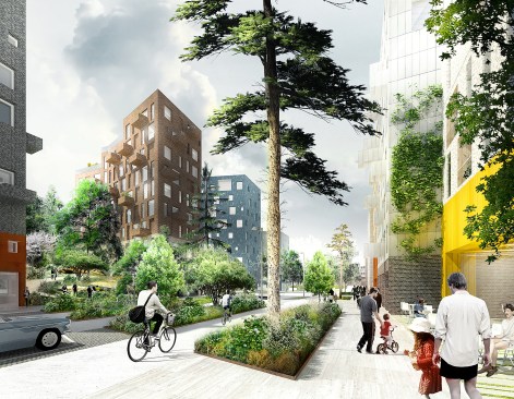 The urban fabric in the area is linked to a robust infrastructure for pedestrians and cyclists with biking lanes, plentiful parking places for bikes and a number of other initiatives to make ‘soft traffic’ the easiest and most convenient transportation form. The master plan is a flexible framework that can adapt to changing scenarios of density while maintaining a high quality of everyday urban life.