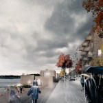 The master plan is composed of three areas, each developed with its own character and identity derived from thorough analysis of context, history and planned functions. Variation establish diverse and attractive urban neighbourhoods, exploring the full potential for dwellers and visitors alike. The master plan maintains a clear line eastwards, framing the water, the historic buildings and cultural activities. The public spaces along the main axis defines sunny terraces, recreative qualities and an active urban edge that establishes a new relation between the city and the water.