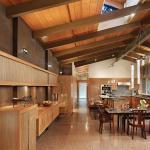 It feels like a new kitchen, although you can trace the bones of the old one. The hemlock ceilings are original, but Finne exposed a steel beam that had been boxed out and inserted a roof monitor, spanning the dining and living areas, with motorized operators that allow for venting. The slightly expanded footprint meant patching in new sections of terrazzo floor. “We started off thinking we’d match the existing terrazzo, but that stone and cement matrix was no longer available,” Finne explains. “I shifted gears and said, rather than be close, let’s have a contrast.” The new rectangle of espresso-colored terrazzo anchors the open kitchen. It’s also a foil for the pale cherry cabinetry, which Finne designed. Some of the panels are smooth resin inset with natural grasses, others have a CNC-milled texture like woven wood.