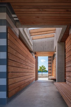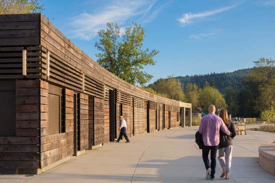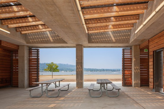 The Lake Sammamish State Park Bathhouse is one of the first of the master plan projects to be implemented within the park. The Bathhouse utilizes a repetitive concrete structure that houses the building program. The concrete consists of recycled content and provides a durable structural system that is integrated into the green roof assembly and provides thermal mass for the interior spaces. The green roofs are planted with local, drought-resistant plants that reduce the heat island effect within the delicate footprint of the park. The wood cladding system is reclaimed cedar siding salvaged from dismantled buildings in western Washington, some of the source building are over 80 years old. The stone paving at the Picnic Shelters and along the landscape paths that weave the park together is found within the drainage basin of Issaquah Creek which runs through the center of the park. All plantings and landscape are native and restorative in nature as part of Lake Sammamish State Park’s goal to be Washington’s signature park for protecting and celebrating urban natural areas, showcasing regionally significant wetlands and wildlife habitat, while enriching the lives of visitors and providing a valued legacy to future generations.