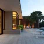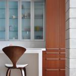 But with two young kids, the homeowners craved a sense of warmth and coziness, too. It’s a concept that seems contrary to expansiveness, but Alterstudio’s design team was able to marry the two. First, says Kevin Alter, a sense of grounding was achieved through materials. Mahogany cabinets and longleaf pine floors offer warmth and richness. Countertop edges are of double thickness, adding a sense of heft to this airy kitchen. A limestone partition “offers enclosure to offset expanse,” says Alter, making the eating nook feel cozy while making it the perfect place to relax and watch the sunset after a long day.