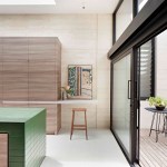 Hydronic heating within the concrete floor evenly heats the home in the winter. Whilst we used a simple and pale palette of timber, rammed earth and a pale concrete floor we used some strategic graphic insertions to the interior design to excite and delineate areas. The green tiled island bench is one such example. Using a hardwearing commercial grade tile, the green also helps connect the landscaping with the internal space.
