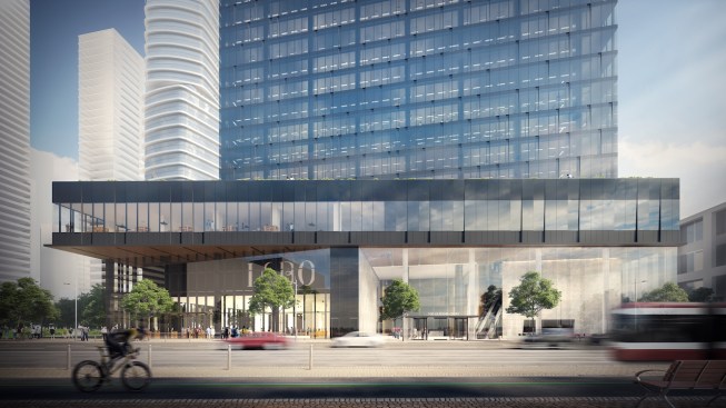 The first phase spans across 11.5 acres and features four to five million square feet of mixed-use space. The 24-storey, Class “AAA” LEED® Platinum commercial and retail building planned at 100 Queens Quay East is an integral component of the first phase of the Lower Yonge Precinct redevelopment, setting a precedent within this future community. A place of work within a predominantly residential community, the tower creates a level of density at the south corner and within the Lower Yonge Precinct that’s required for this urban hub. It has provisions for a large food market and will include the new headquarters of the Liquor Control Board of Ontario (LCBO).