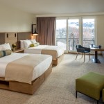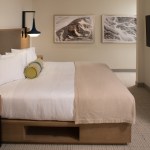 The “base camp” concept carries through in the guest room design as well. Ensuring full relaxation between adventures, each room features custom elements: entry benches, banquettes for dining or play-time, rift sawn white oak veneer cabinetry, and ample built-in storage, such as entry cubbies, dressers and closets. LED lighting, Water Sense plumbing, and quartz porcelain tile was also incorporated.