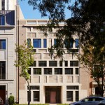 Local firm HBRA Architects drew on a wide range of historic precedents for its 7,011-square-foot Lincoln Park House in Chicago. But while the designers invoke Louis Sullivan and Frank Lloyd Wright’s Charnley-Persky House and H.H. Richardson’s Glessner House, the result displays few explicit historic references. “It’s trying to be modern and traditional at the same time—and pulling it off,” R. Michael Graham said. In fact, the façades seem timeless, with highly figured stone inset panels and an asymmetrical array of windows set within an abstract masonry grid.