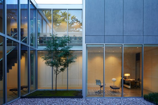 Unexpectedly, the solid steel door doesn’t lead into the house—instead, it’s the entrance to an open courtyard that forms the heart of the structure. Glazed walls line the living spaces beyond: “You can see right through the house from the alley behind to the street in front,” Scarpa says.