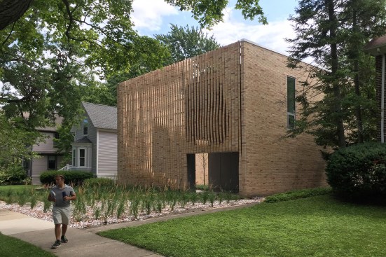 Evanston, Ill., can be a sober place: It took the college town just north of Chicago four decades after the repeal of Prohibition to permit liquor sales within its borders. But when an investment banker with an interest in art and architecture hired Lawrence Scarpa, FAIA, of Hawthorne, Calif.–based Brooks + Scarpa to design his new Evanston house, it was far from clear how the architect would respond to the locale. The client was drawn to a steel house Scarpa had designed in Venice, Calif., and expected something similar. But Scarpa, who partnered with Chicago-based Studio Dwell Architects on the project, had other ideas: “We’re in Chicago; we need to do brick,” he said.