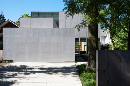 Unlike the house’s more prosaic neighbors—which have front doors that directly face a straight path from the sidewalk—Scarpa choreographed an elaborate entry sequence: A diagonal walk across the front yard ensures that visitors experience the changing natural light across the rippled façade as they approach the front door. “You get that whole sense of movement,” he says. “It’s a bit like a journey coming in.”