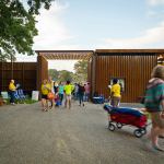 The Gateway is a thickened wall, clad in weathering steel, creating an arrival sequence at the northern edge of the venue. Its rigid geometry contrasts the bands of planting and paving material that move around it. It contains ticket booths, rental space, restrooms, concessions, storage, recycling, and waste functions.