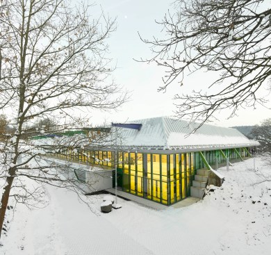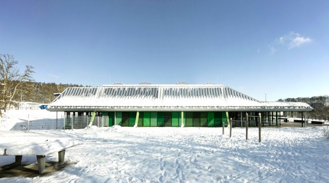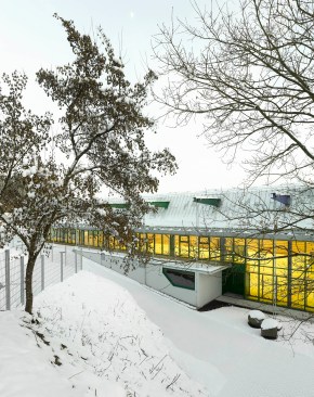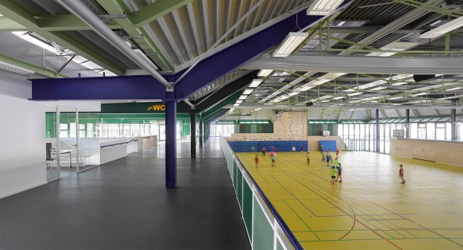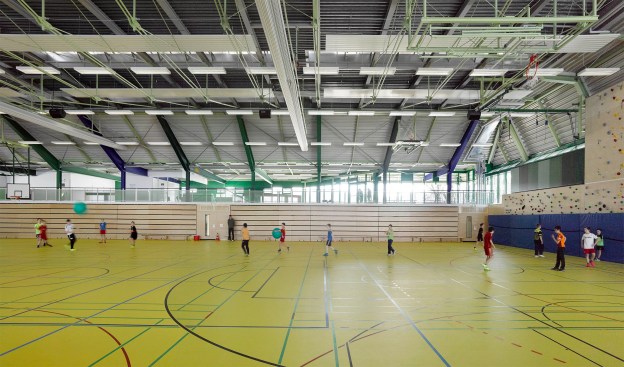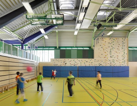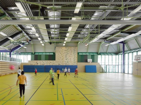 In Lorch, Germany, a small city in Baden-Württemberg, Behnisch Architekten has developed a school and sports center over the past 30 years. Originally completed in 1976 by Behnisch & Partner — the firm led by Günter Behnisch and Stefan Behnisch — the three school buildings and a three-field sports hall are subtly integrated into the surrounding landscape. The city of Lorch recognized the architectural value of the site and decided to bring Behnisch Architekten, under the leadership of Stefan Behnisch, to cautiously refurbish the separate elements of the building.
