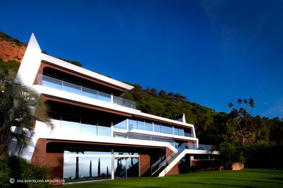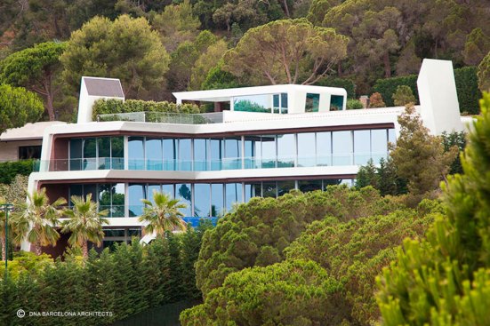 Residence Punta Brava IV is a house that blends seamlessly with its surroundings. The nearby Mediterranean sea is the source of inspiration. The sinusoidal, undulating movements of the waves are translated architecturally into sinusoidal forms and curves in the house. These organic forms also serve for allowing the house to negotiate with a challenging topography. The contemporary lines include glass façades providing a breathtaking view over the Mediterranean sea from all rooms.