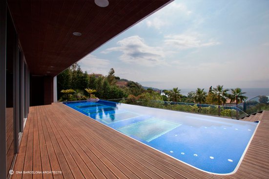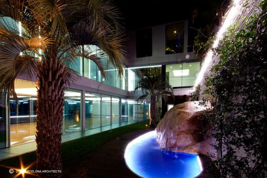 The night section is serviced by a superb glass elevator opening into a glass mezzanine overlooking the ground floor living room. The long hallway leads to six bedrooms, including a master bedroom, each with their own en suite bathroom, toilet and dressing-room. Furthermore, the basement offers a great potential, as it has a large showroom for cars collectors, a garage, a home-cinema room, a spa area with indoor pool, a sauna, as well a Turkish bath and Jacuzzi.