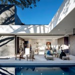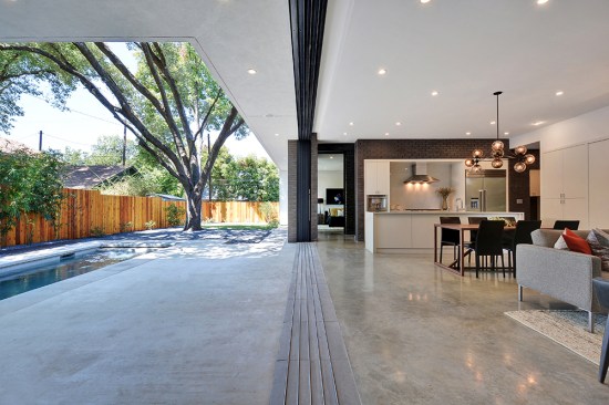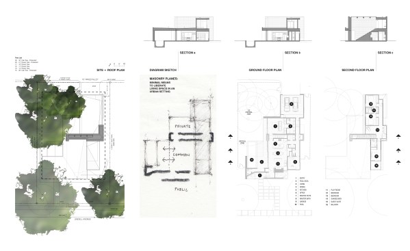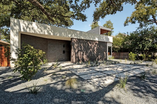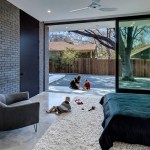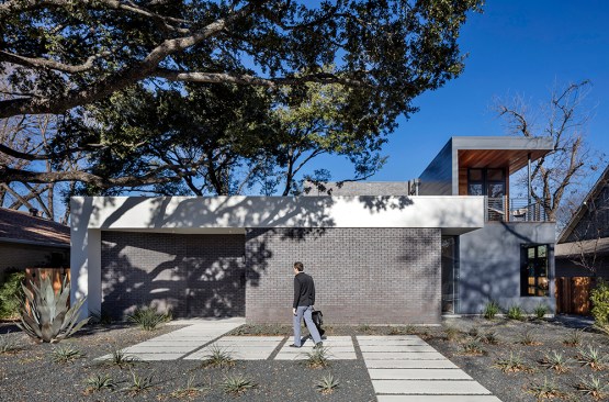Austin’s Bouldin Creek neighborhood provides a unique and ever-changing context to the Main Stay House. The challenges were both cultural and site-specific. The Main Stay House exists as a simple and straightforward proposal – an architectural experiment on domesticity – enabling lifestyle flexibility through clean forms, relatable materiality, and an urban infill living space that blurs the lines between inside and outside. Paring down the components of a house to a minimal amount of planes and openings, the scheme is anchored by an obscured entry sequence and a staircase volume, both clad in iron spot masonry. These plans act as thresholds between the respective realms of public, common and private, by minimal means. The masonry also contrasts with an otherwise muted interior atmosphere of smooth, desaturated surfaces. The entry sequence is a twist upon the conventional domestic front door, front facade, and fence. The front masonry wall replaces the typical residential fence and frames an indirect access to the front door, functioning as a privacy barrier while revealing slices of the interior to the public street. The staircase bifurcates the layout to provide a clear division between the common and private zones of the house, while reading as a clear mass from all outside view. The design consolidates the service core along the east façade, allowing the structure to fully open up the living zone to the pool court and the existing trees, directly connecting the interior and exterior. The house isn’t about over-the-top opulence, but creativity and substance. Materials, finishes and surfaces are carefully considered and detailed. While pushing the limits of architecture in the Bouldin Creek neighborhood and Austin to a larger scale, the Main Stay House has stayed true to the rather modest and laid-back tradition, offering a distinctly Austin experience, to both residents and visitors alike.